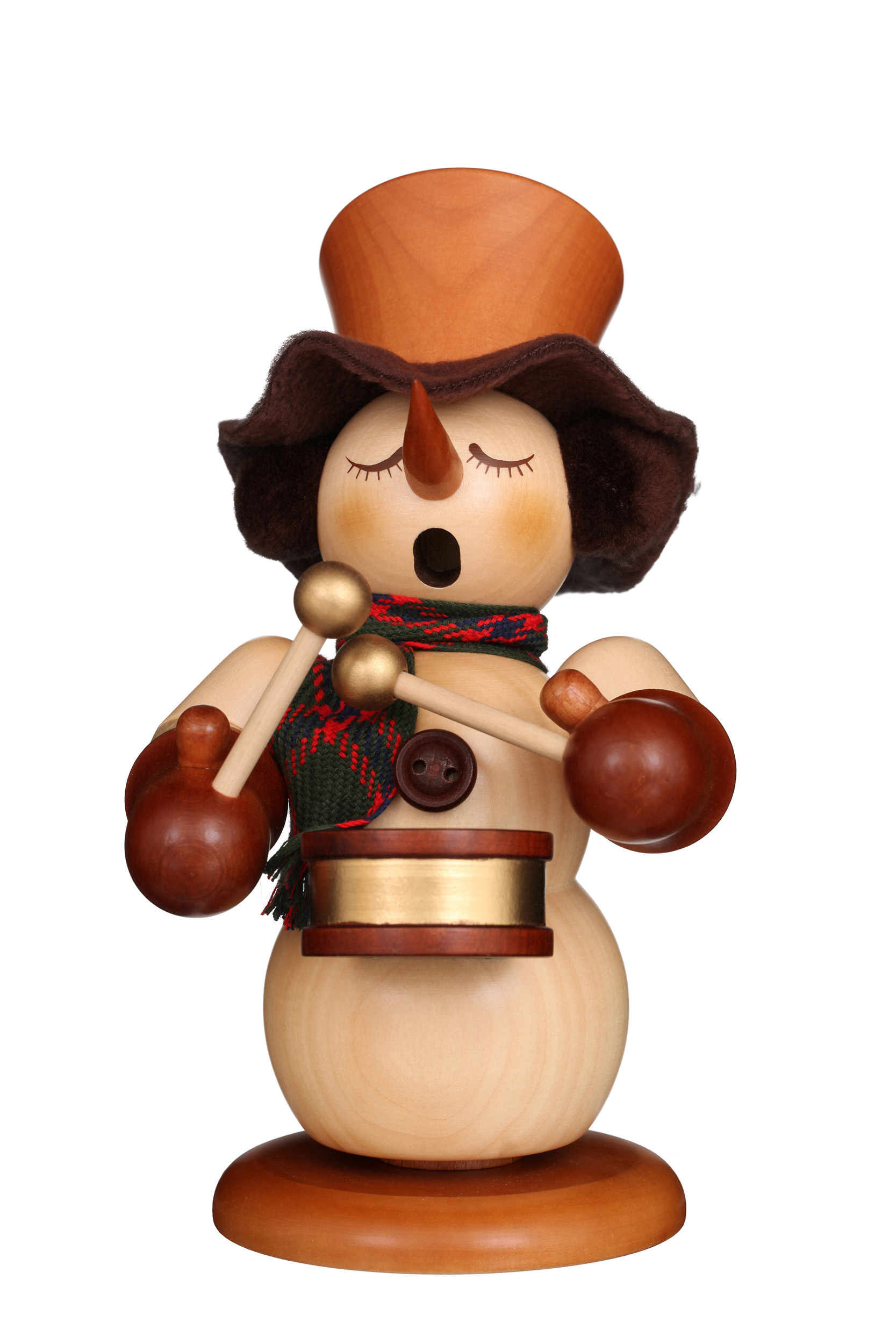 Räuchermann Schneemann natur mit Trommel